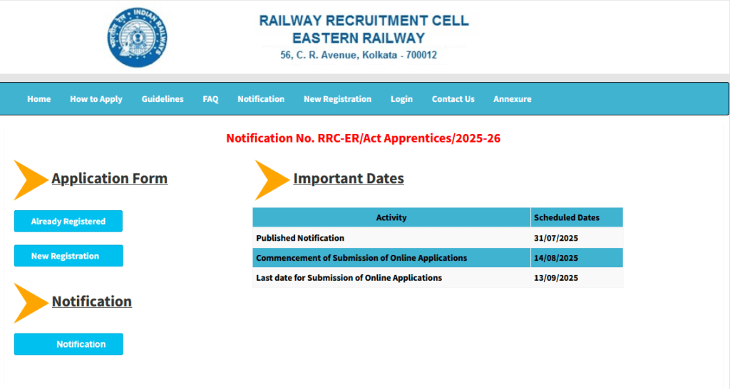RRC-ER/Act Apprentices/2025-26:- Details Notification